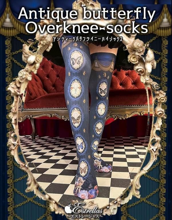 クラシカルな装いにぴったりの、アンティークな雰囲気のあるニーハイソックス。