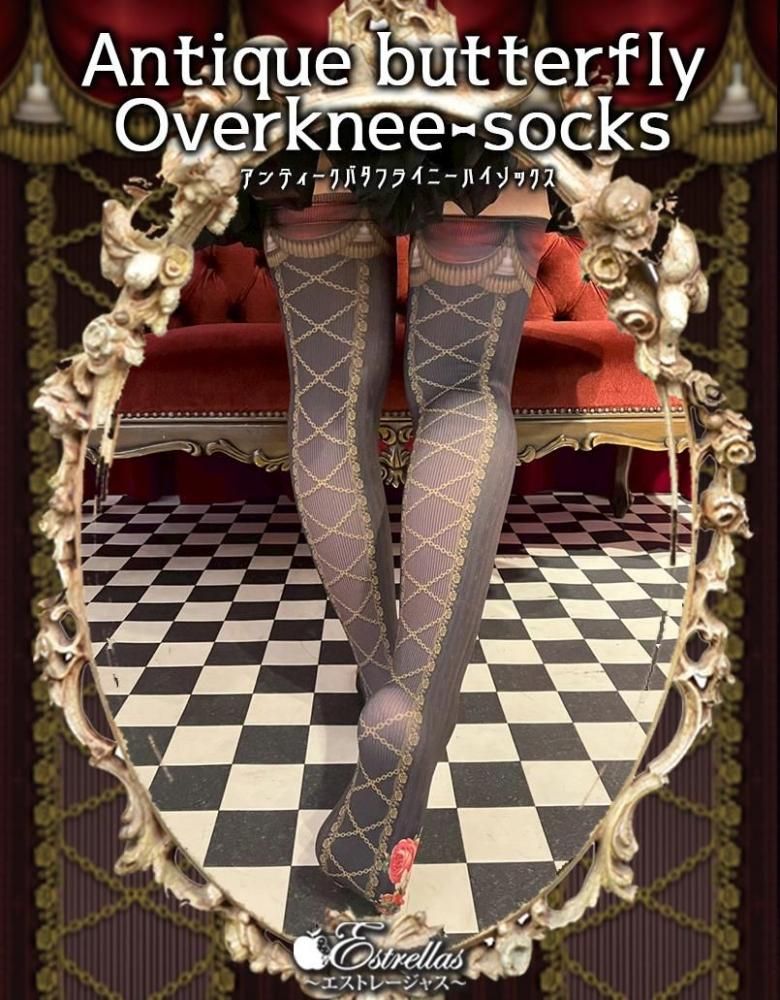 クラシカルな装いにぴったりの、アンティークな雰囲気のあるニーハイソックス。