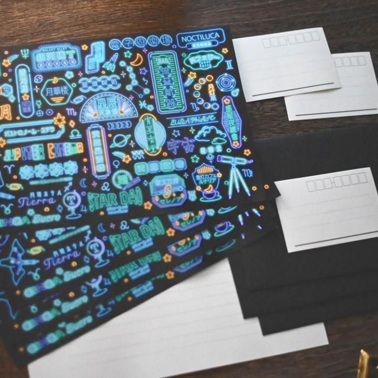 ギンガレトロなレターセット。透け感がお洒落な封筒と宛名シール付きです。