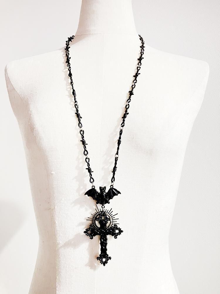 ゴシックやパンク系ファッションをはじめ、カジュアルな装いにもおすすめな有刺鉄線ネックレス。