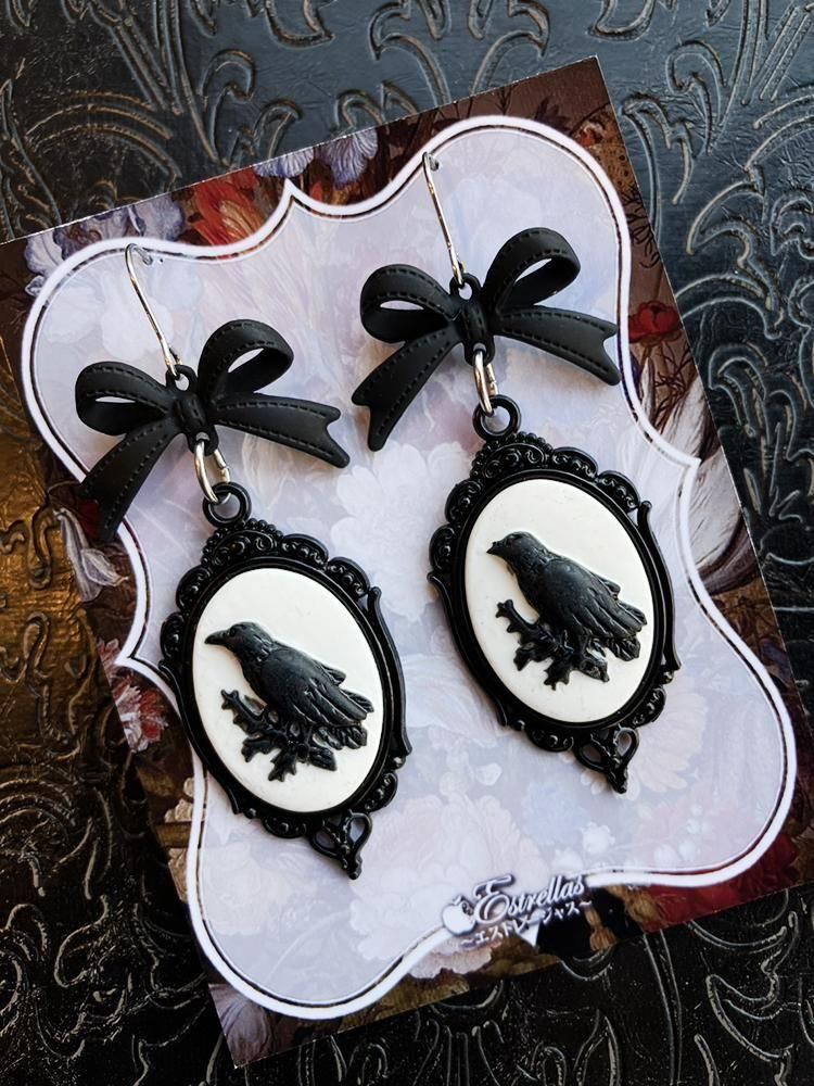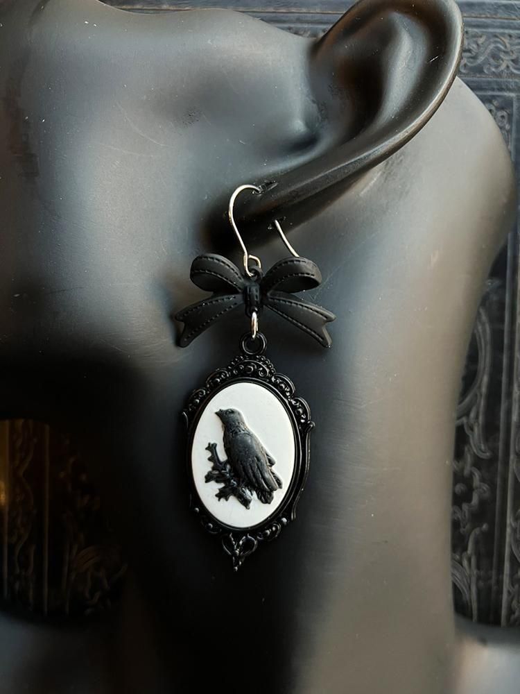 闇夜を翔ける鴉をモチーフにした、ゴシック&アンティーク調のカメオピアスです。