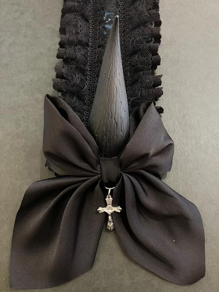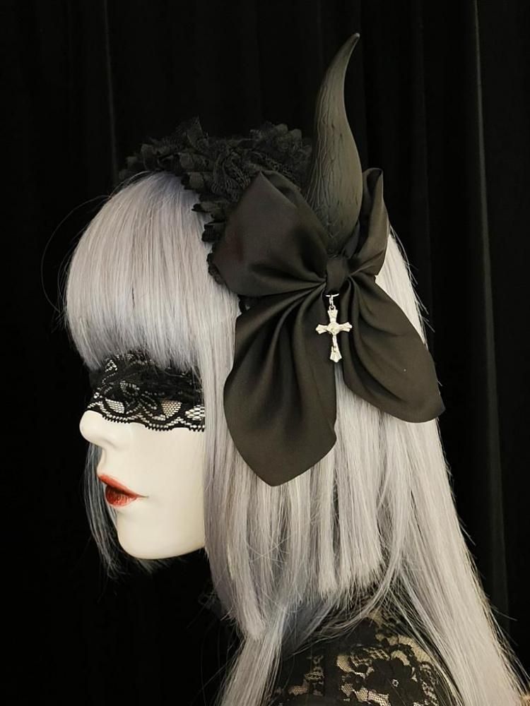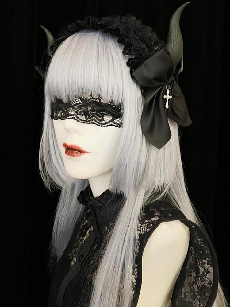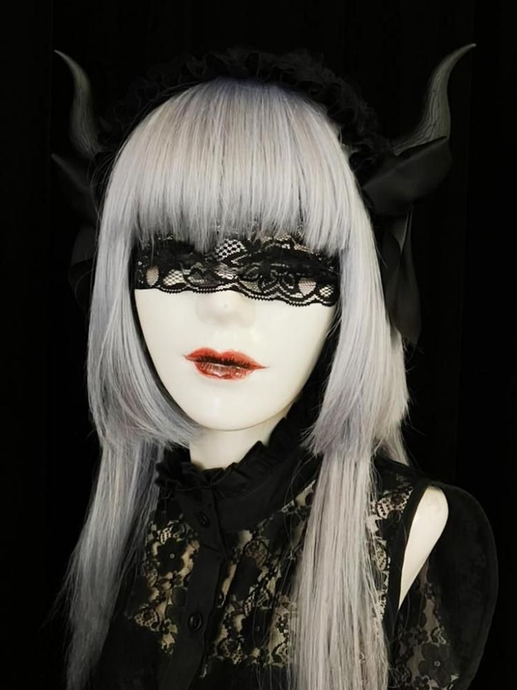 艶やかな黒角と繊細なレースのコントラストが、より神秘的な印象を引き立てます。
